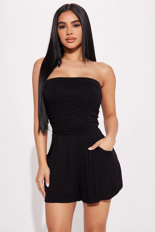 Anchors Away Black Tube Romper - Elastic Waist & Comfort Stretch